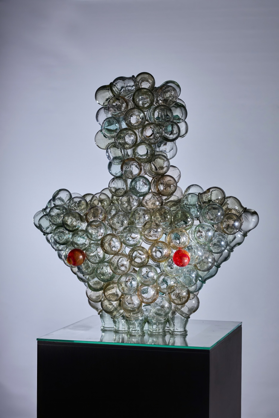 В галерее ARTZIP представлены его работы из битого стекла, которые демонстрируют собой хрупкость и тонкость окружающего нас мира. Причудливые формы и олицетворение основ жизни показаны в фрагментах, склеившихся друг с другом и повторяющих атомы, соединившиеся в спираль ДНК.