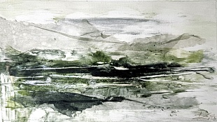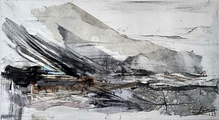 Коллаж/коллажная графика, тонированная японская бумага, металлизированная бумага, акрил, красители. Размер изображения 31 см х 17 см., размер листа 26 х 39 см.
