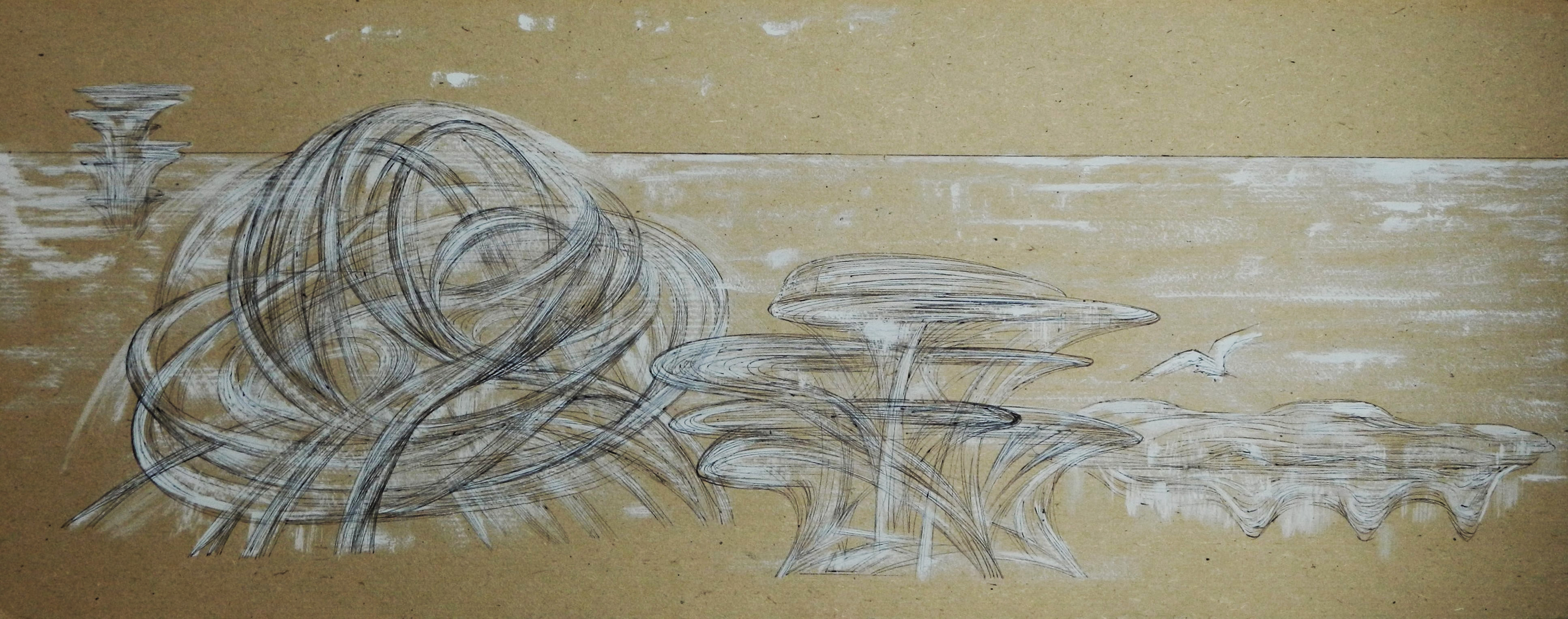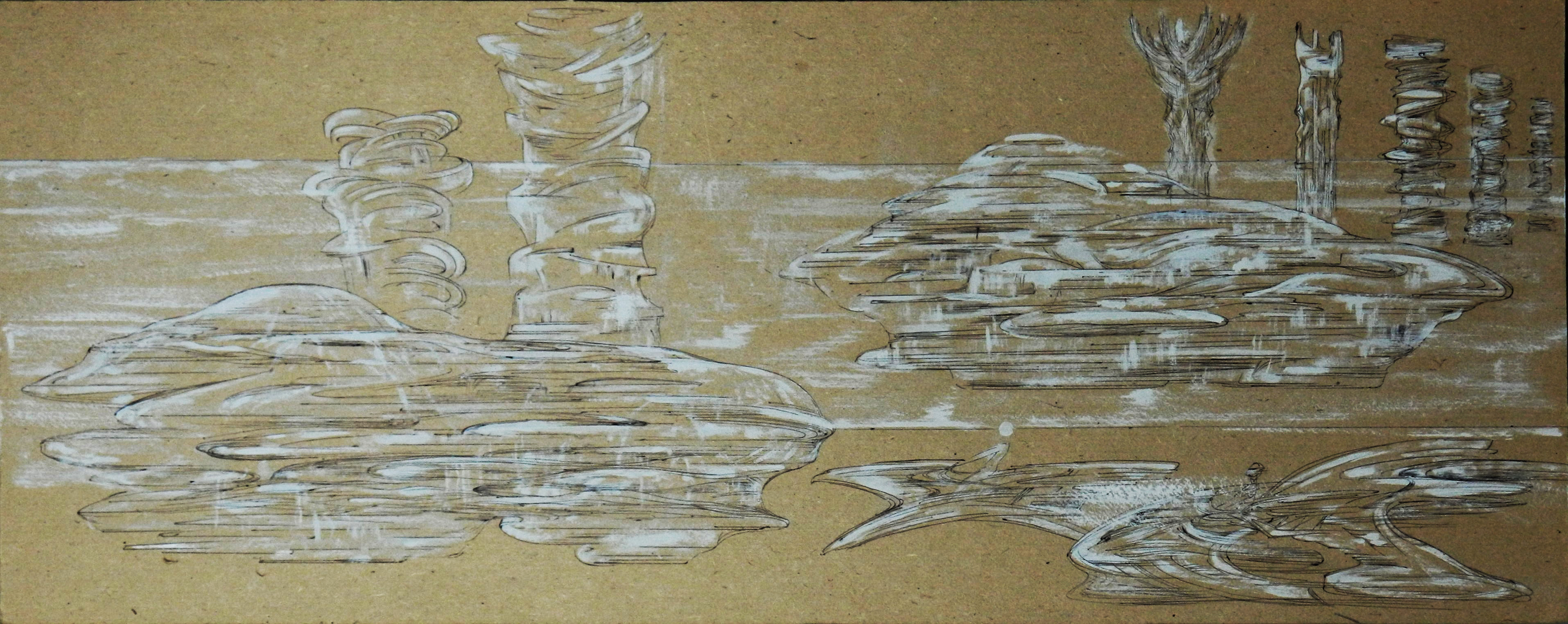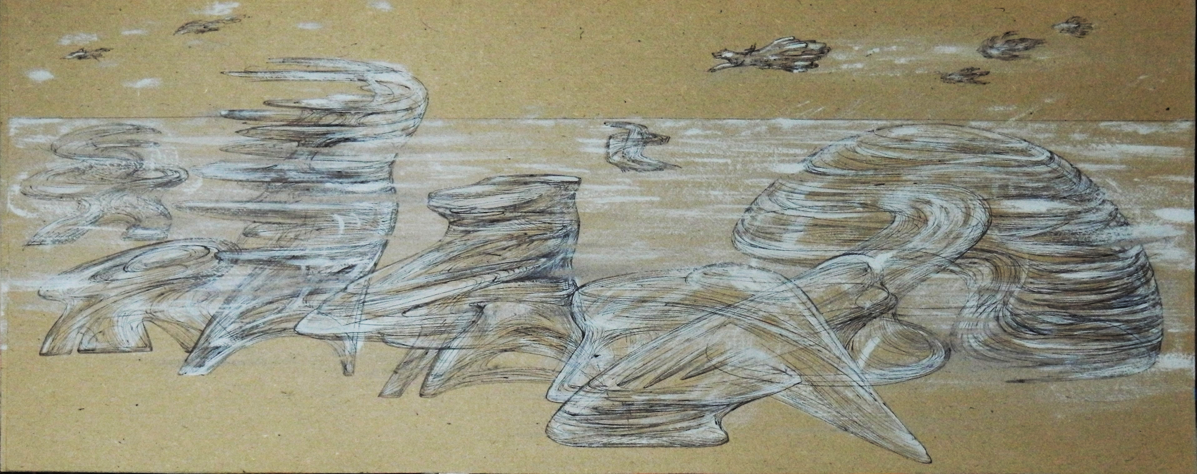 Техника: Картон, шариковая ручка, акриловые белила. Продается серией