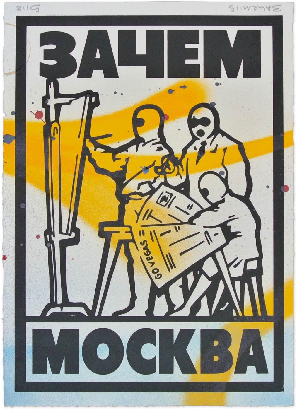 На сайтп представлена эксклюзивная серия из четырех принтов с авторской печатью на окрашенной вручную итальянской хлопковой бумаге. Первый и, возможно, последний раз, когда представители команды ЗАЧЕМ тиражируют работы в технике шелкографии.