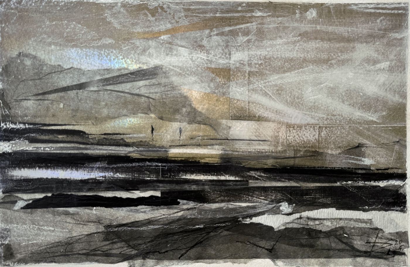 Техника: Коллажная графика с применением разных техник ручного окрашивания бумаги ( японская бумага ручной работы, акрил, красители, чернильные карандаши, пастель, нанесение типографской краски на металлизированную бумагу). Область изображения 26х43 см.