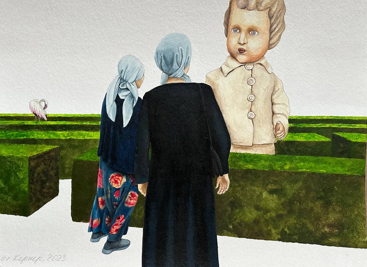 В своих рисунках использует образы, связанные с пространством ностальгии – старые гаражи, заброшенные деревянные одноэтажки, полуразрушенные деревни. Они представляют собой нечто, что одновременно было и не было, что словно разворачивается в границах сновидения. В работах Юлии Кернер можно увидеть различные аллюзии – отсылки к литературе и кинематографу (например, итальянскому неореализму), мировому изобразительному искусству и народной культуре.