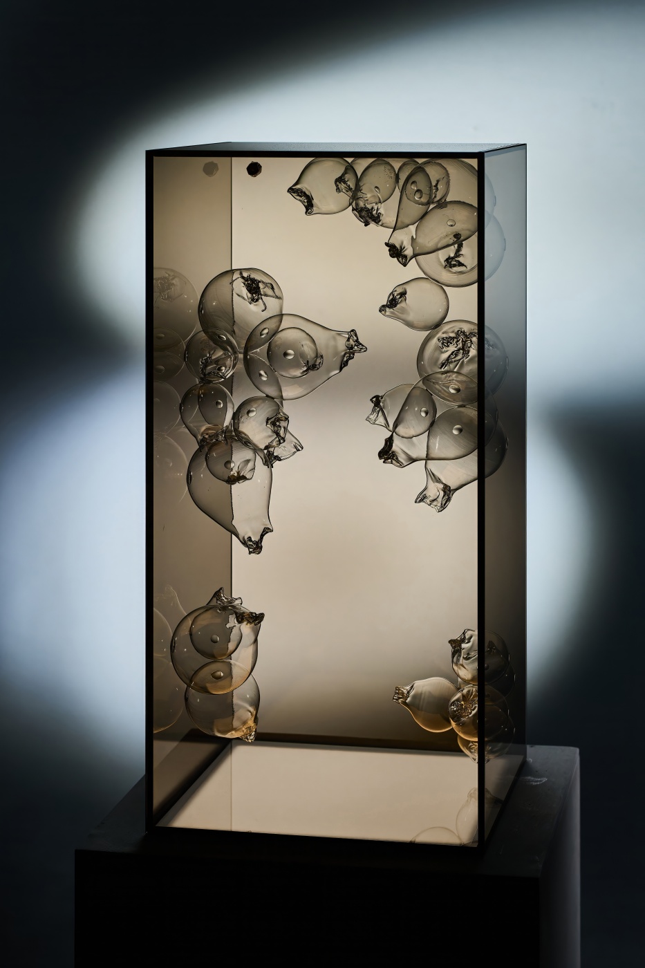 В галерее АРТЗИП представлены его работы из битого стекла, которые демонстрируют собой хрупкость и тонкость окружающего нас мира. Причудливые формы и олицетворение основ жизни показаны в фрагментах, склеившихся друг с другом и повторяющих атомы, соединившиеся в спираль ДНК.