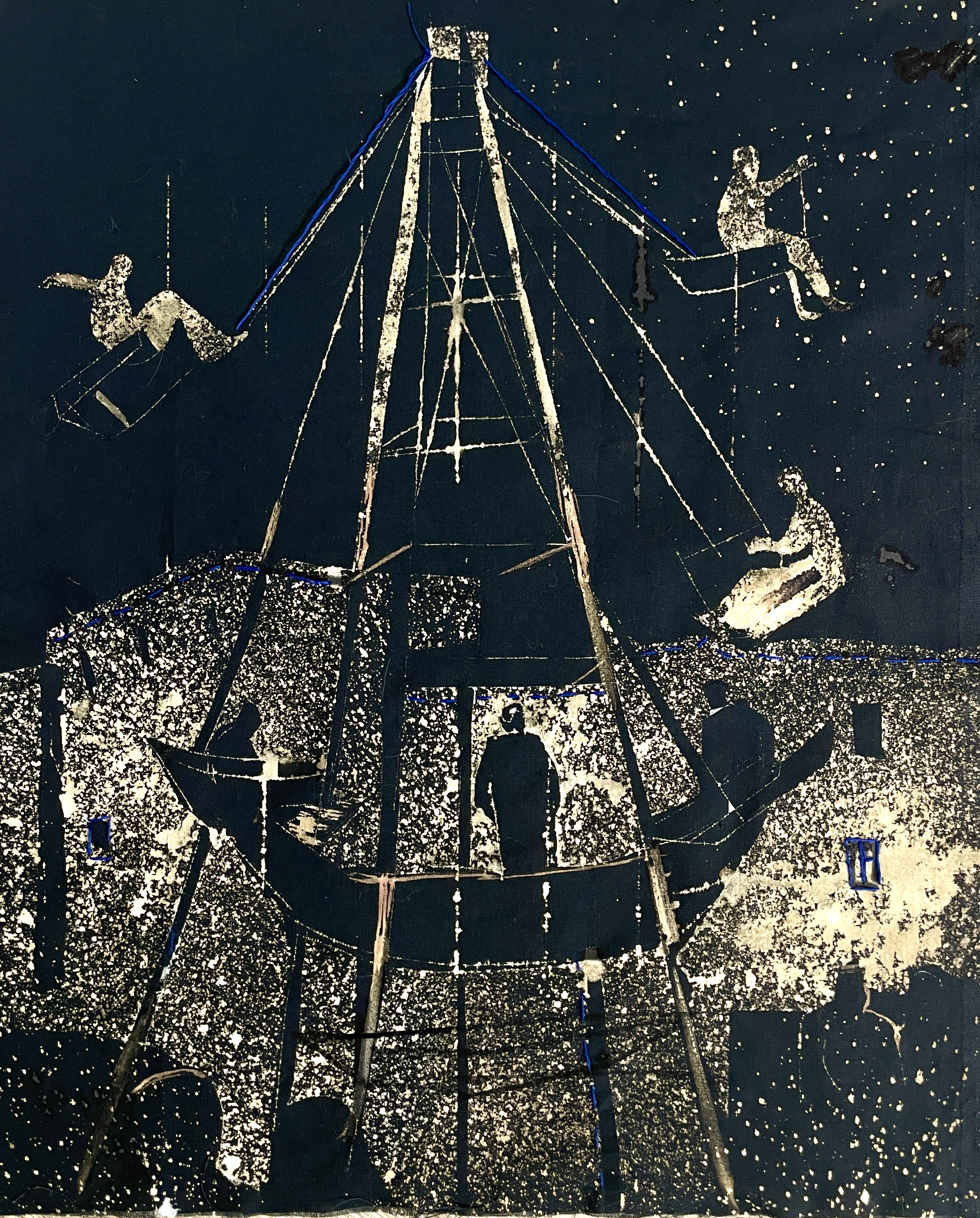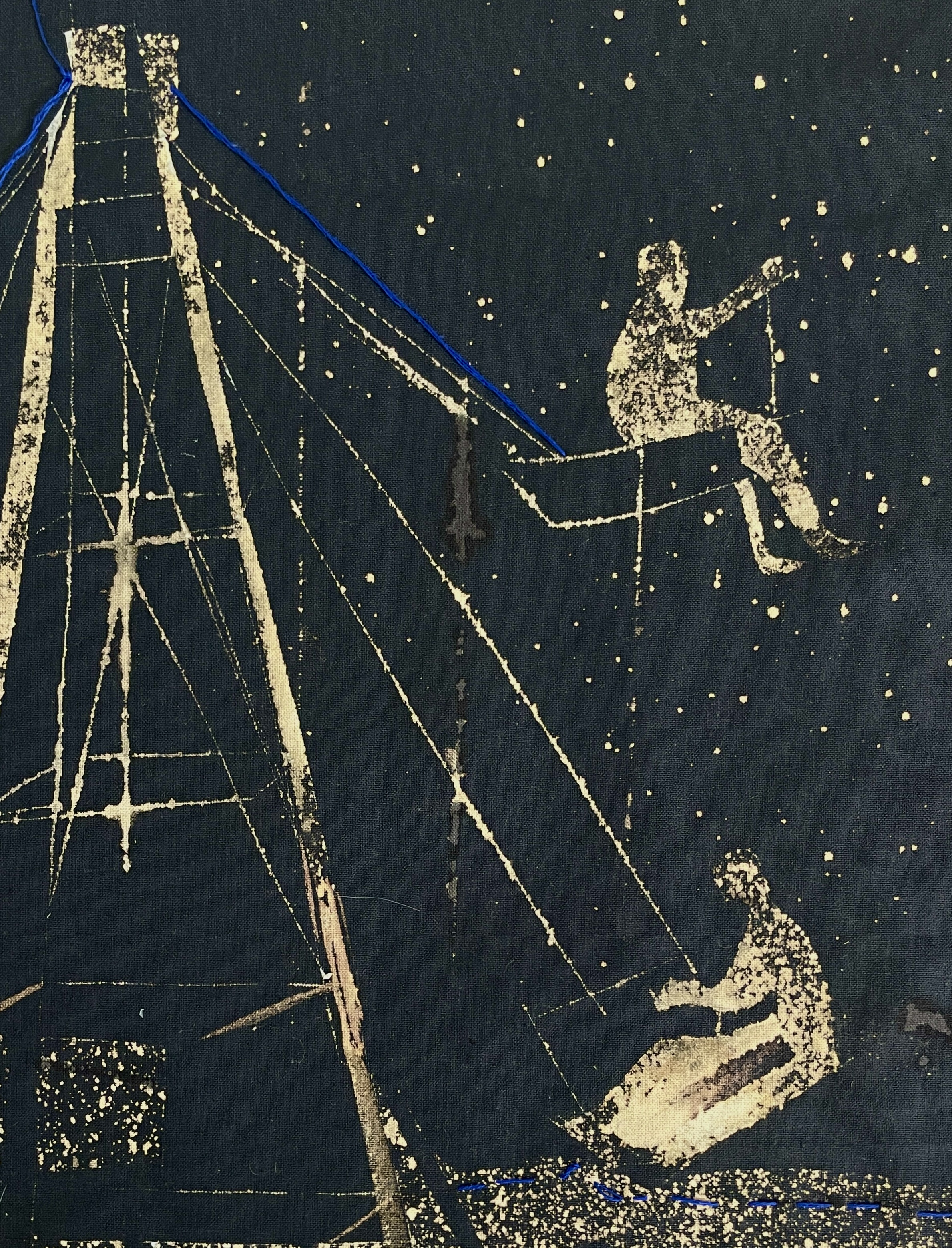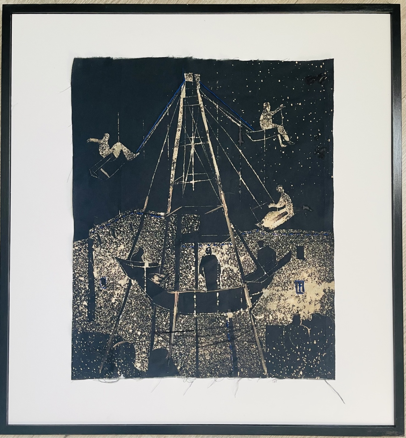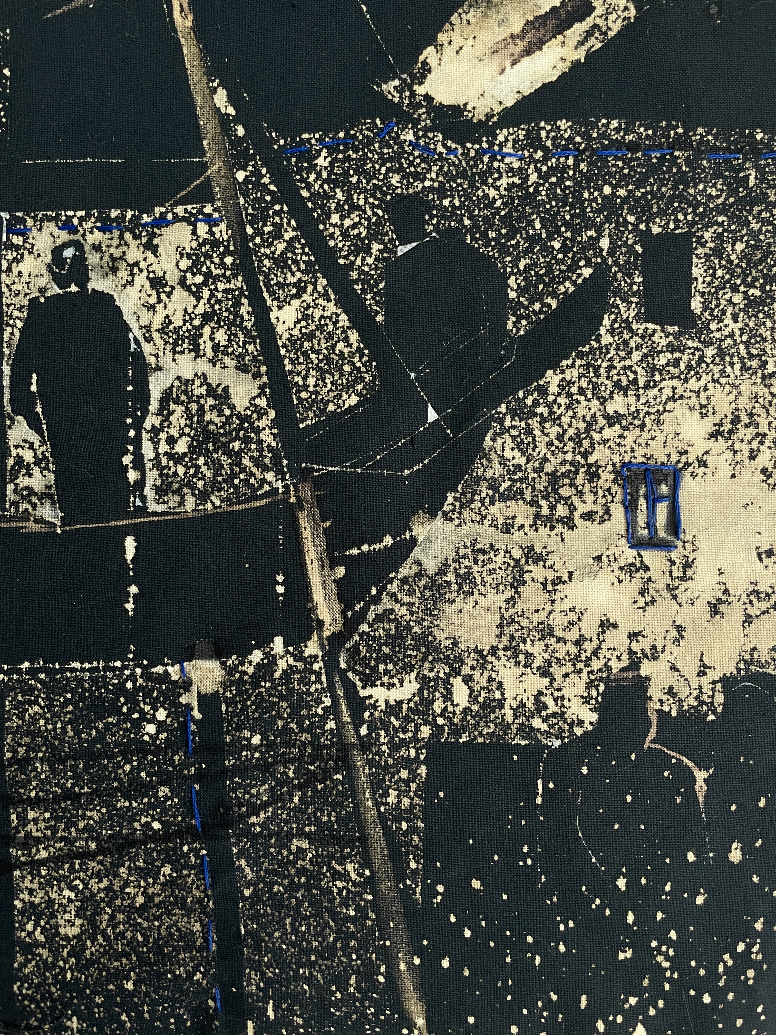 Техника: Хлорография по ткани, вышивка, трафарет. Работа оформлена в раму, размер работы в раме - 74 x 70 см.