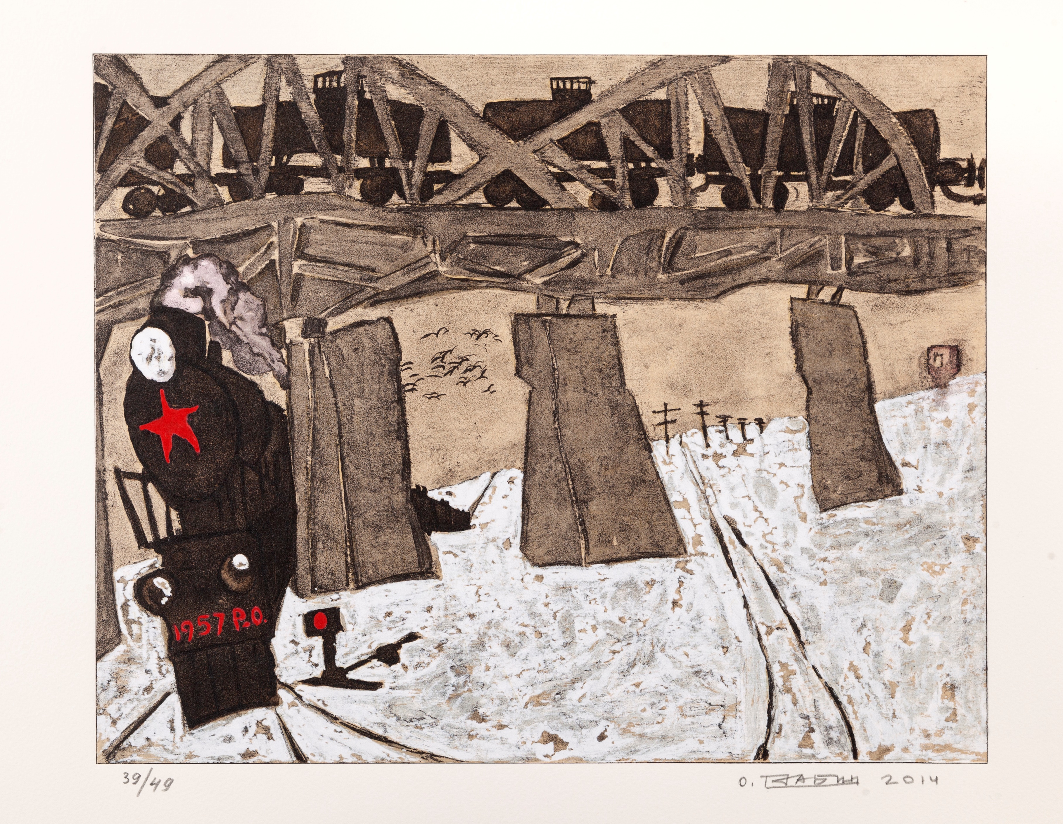 Работы Оскара Рабина (1928-2018) относят к нон-конформистскому течению. Его живописи присуща лаконичность формы, скупость цвета, широта мысли.Творчество Оскара Рабина - это переплетение жанров и художественных приемов, в картинах использованы элемент коллажа и ассамбляжа. Драматургия произведений подчеркнута хронологическими заметками - обрывками газет и документов, наклеек и этикеток. На одном холст Оскару удавалось изображать не конфликтующие между собою натюрморты и пейзажи. Рабин жил в тяжелые для художников времена, когда свобода слова и “кисти” была непозволительной. Именно поэтому мы видим в его картинах полное отражение той суровой реальности, которую он высказывает прямо и открыто. Трагической для самого художника реакцией со стороны коммунистических партий было лишение его советского гражданства.Рабин - один из основателей Лианозовской группы и знаменитой Бульдозерной выставки в 1974 году. Работы художника хранятся в Третьяковской Галерее, Русском Музее, музеях Парижа, США и других частных российских и зарубежных коллекциях.