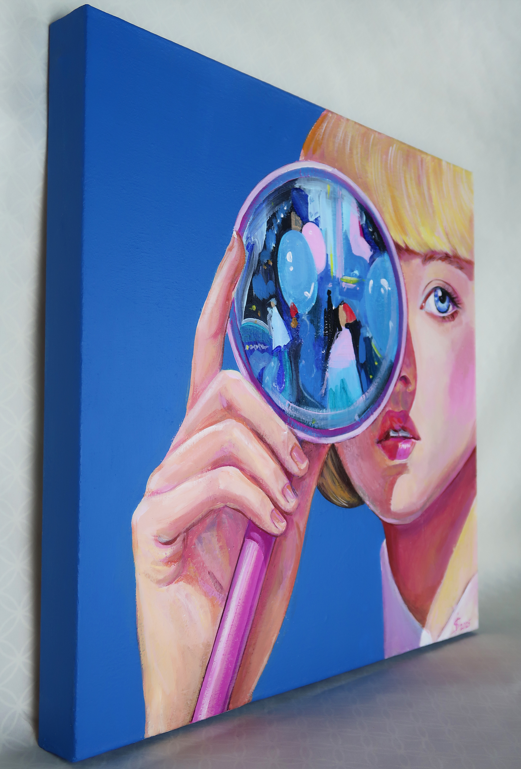 Картина "Путь к чудесам" передает детское любопытство, которое обогащает наш жизненный опыт и позволяет по-новому воспринимать окружающий мир. Девочка, задумчиво рассматривающая предмет через лупу, олицетворяет исследовательский подход, стремящийся углубиться в суть реальности. Лупа выступает здесь символом внимательности к деталям и открытия новых аспектов привычной действительности. Отраженный в ней праздник напомнит о радости простых моментов, которые часто остаются незамеченными в рутине повседневной жизни.