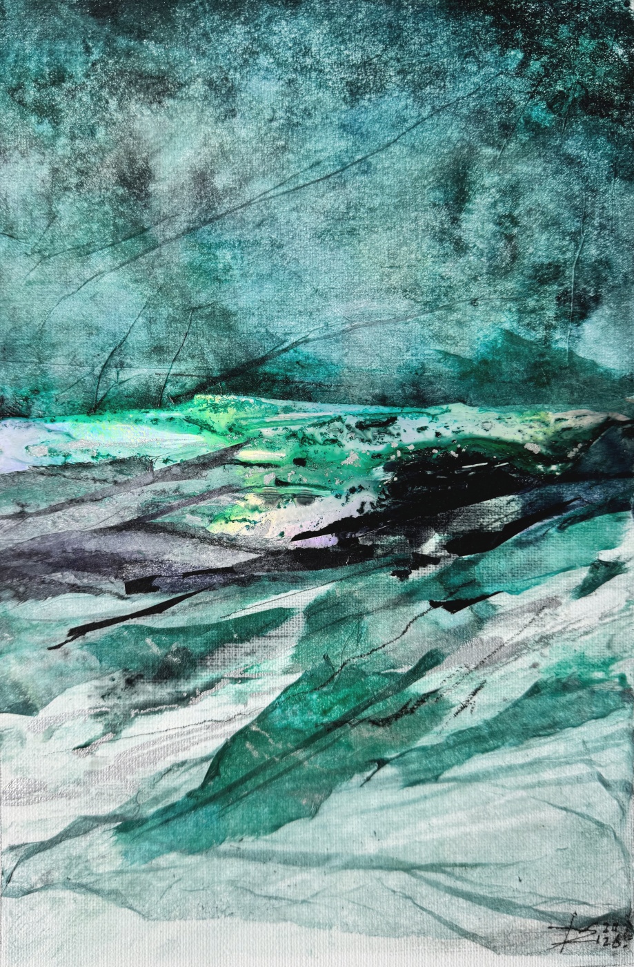 Техника: Коллаж / коллажная графика, тонированная японская бумага, металлизированная бумага, лак, красители