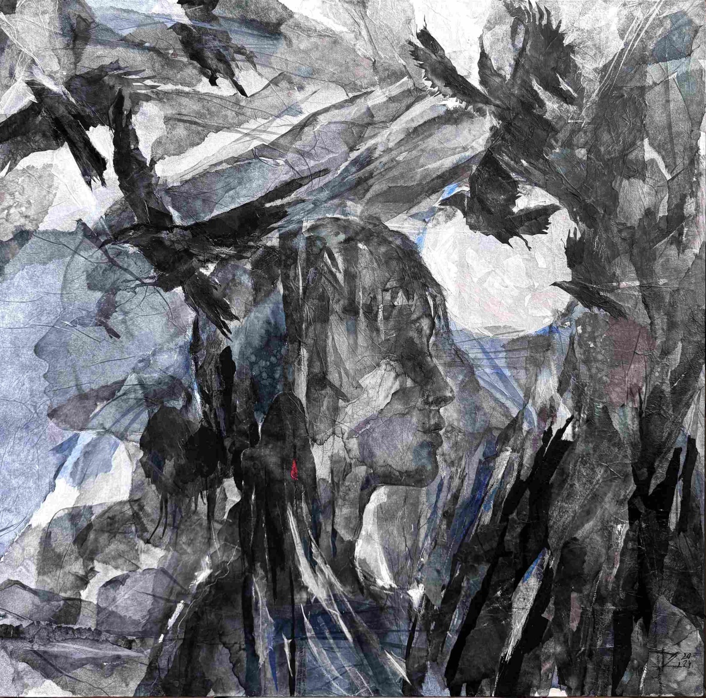 Техника: Смешанная техника/коллаж на холсте, коллажная живопись с применением разных техник ручного выкрашивания бумаги (японская бумага ручной работы, акрил, красители, чернильные карандаши)