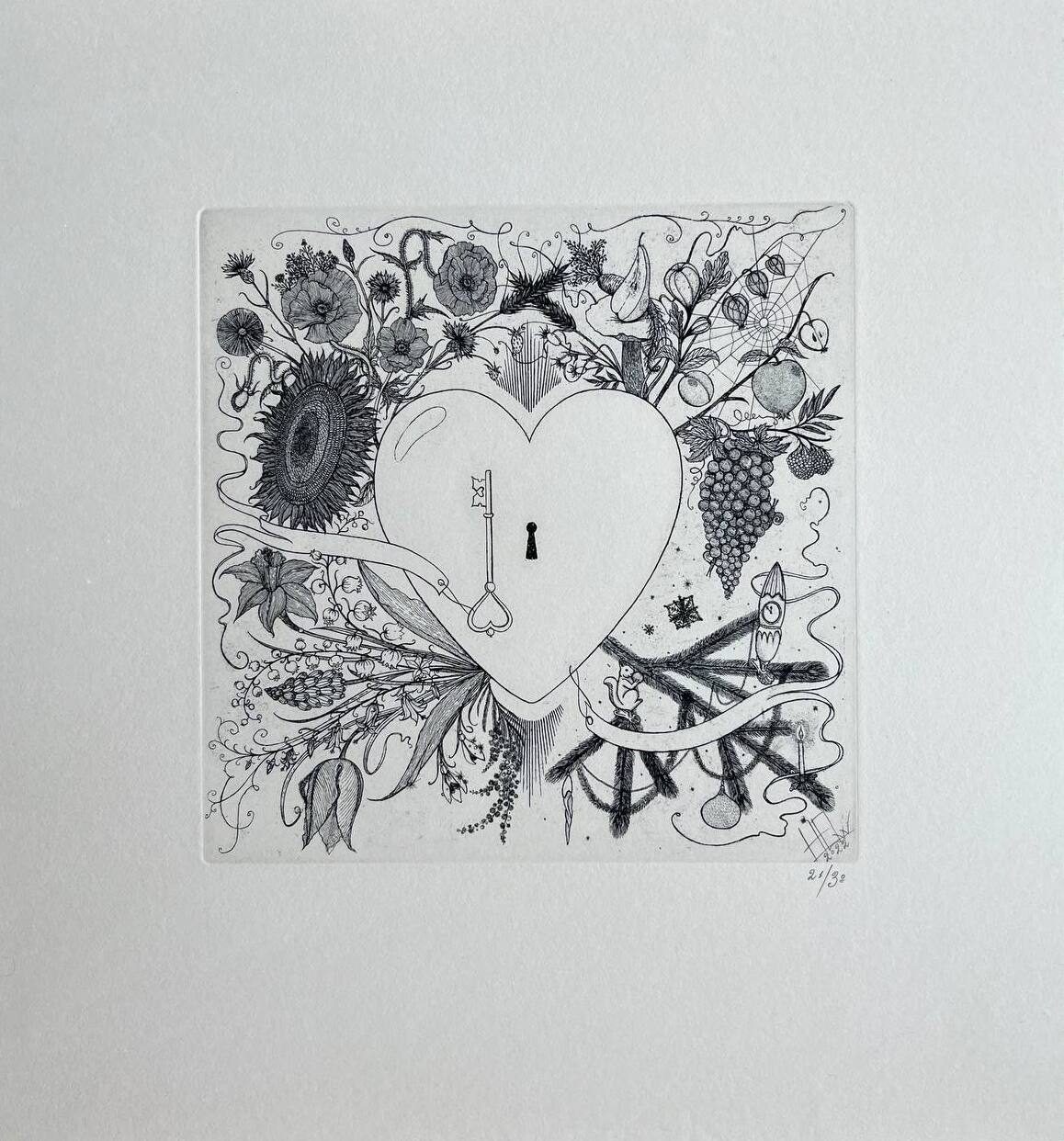 Техника: Бумага Fabriano, офорт, травленый штрих. Тираж 30. Оттиск 18 x 18 см., лист 35 x 30 см.