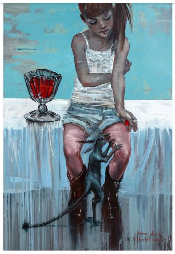 Современная российская художница.В своих работах Ирина Дрозд исследует природу добра и зла в человеке, стремясь зафиксировать грань между этими противоположностями. Часто обращается к теме детства, где гибкость сознания и отсутствие четких установок позволяют легче воспринимать мир. Создает образ человека-эскаписта, который, играя, убегает от реальности, жонглируя смыслами и ролями, связанными с бинарными парами: добро — зло, невинность — страсть, дух — плоть.