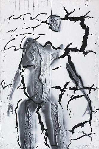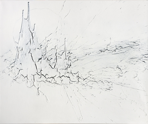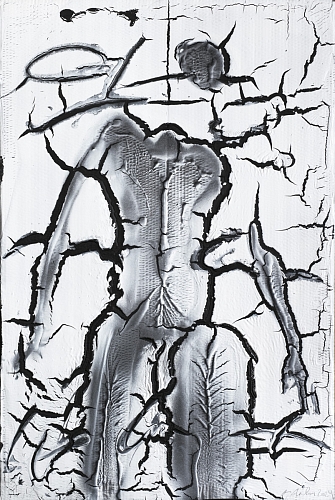 жёсткими кракелюрами, коркой, через которую продирается и художник и зритель, фактура говорит о борьбе плоскости с желанием пространства.