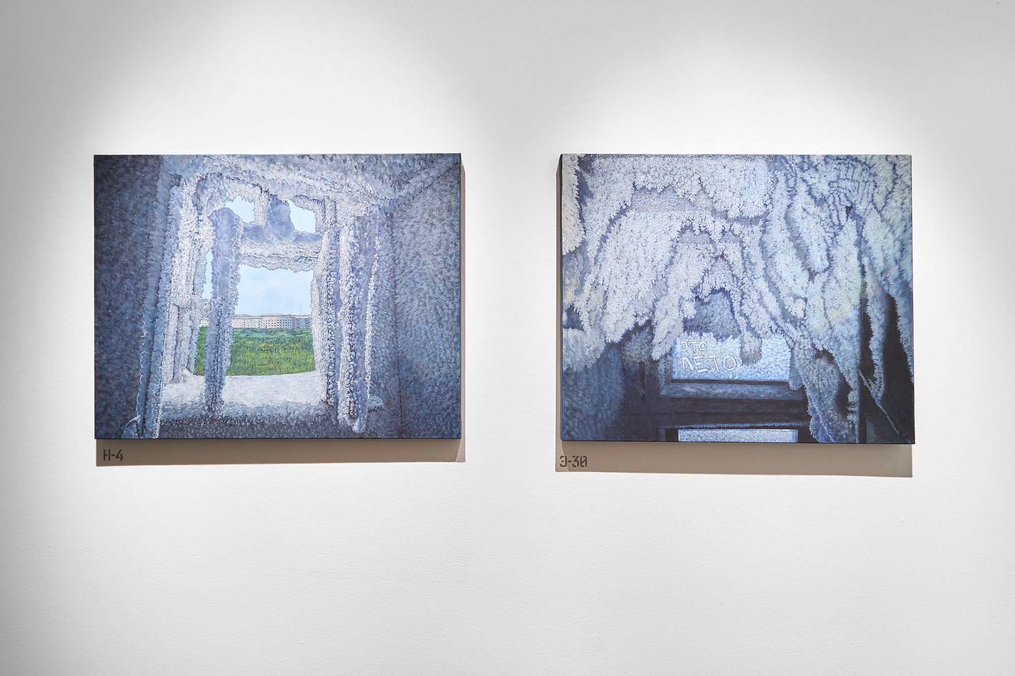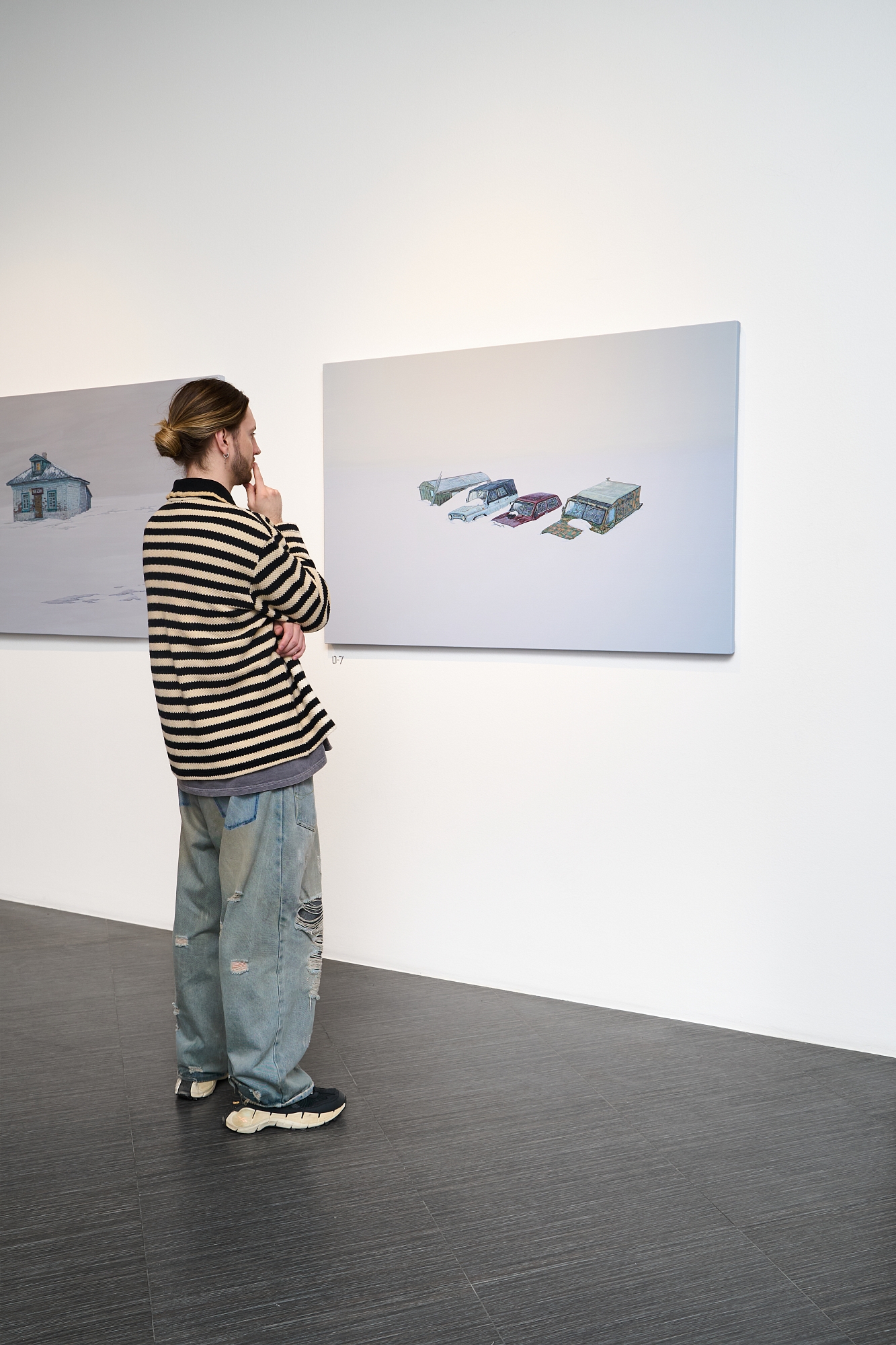 Экспозиция выстроена как маршрут ностальгического путешествия, в котором зритель оказывается внутри разрозненных, но взаимосвязанных фрагментов северного ландшафта. В проекте представлены живописные работы Насти Миро и пастозные, экспрессивные работы Всеволода Саплина, которые фиксируют состояние северных поселений в моменте между прошлым и будущим. Архитектура, лишённая декоративности, становится носителем памяти, а пейзаж — средой, в которой человеческое присутствие ощущается как уязвимое и временное.