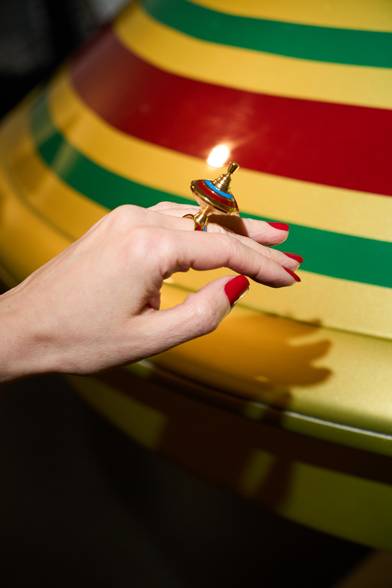Особое место в экспозиции занимает арт-объект «Юла желаний», созданный совместно с творческим объединением «Площадка 112» и впервые представленный на ярмарке Cosmoscow в 2025 году на стенде галереи АРТЗИП.