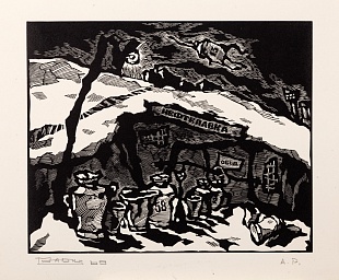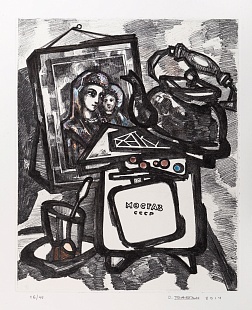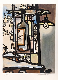 Линогравюра, литография в три цвета (чёрный и два цвета фоновых) Бумага Arches 300 gr. Франция. Тираж 50 экземпляров