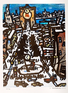 Литография на металле (цинк) в 15 цветов. Тираж 42/49. Лист 42×31 см., оттиск 38×28 см.