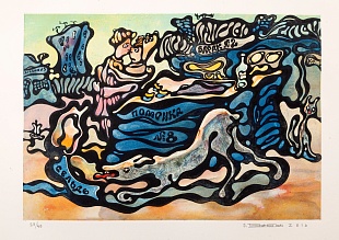 Линогравюра, литография в 31 цвет, бумага Arches 300 gr. (Франция). Тираж 49 экземпляров